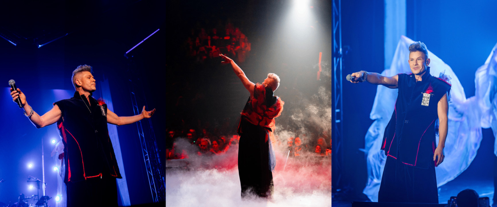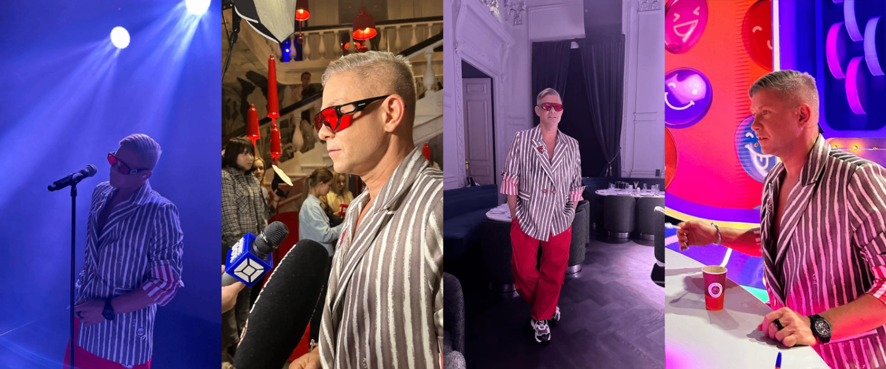 Выступление на премии "Золотой Грммофон"было поделено на несколько смысловых блоков, каждый из которых отражал определенный важный этаж в творческом пути артиста. Блок про любовь Митя открывал в костюме от "KОD".