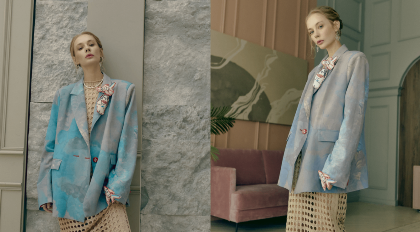 голубые оттенки пиджаков символизируют свежесть весеннего воздуха после долгой зимы. Этот цвет олицетворяет душевную чистоту, возвышенность и стремление к идеалу. он наполняет пространство осознанностью и ясностью, создавая атмосферу спокойствия и уверенности.