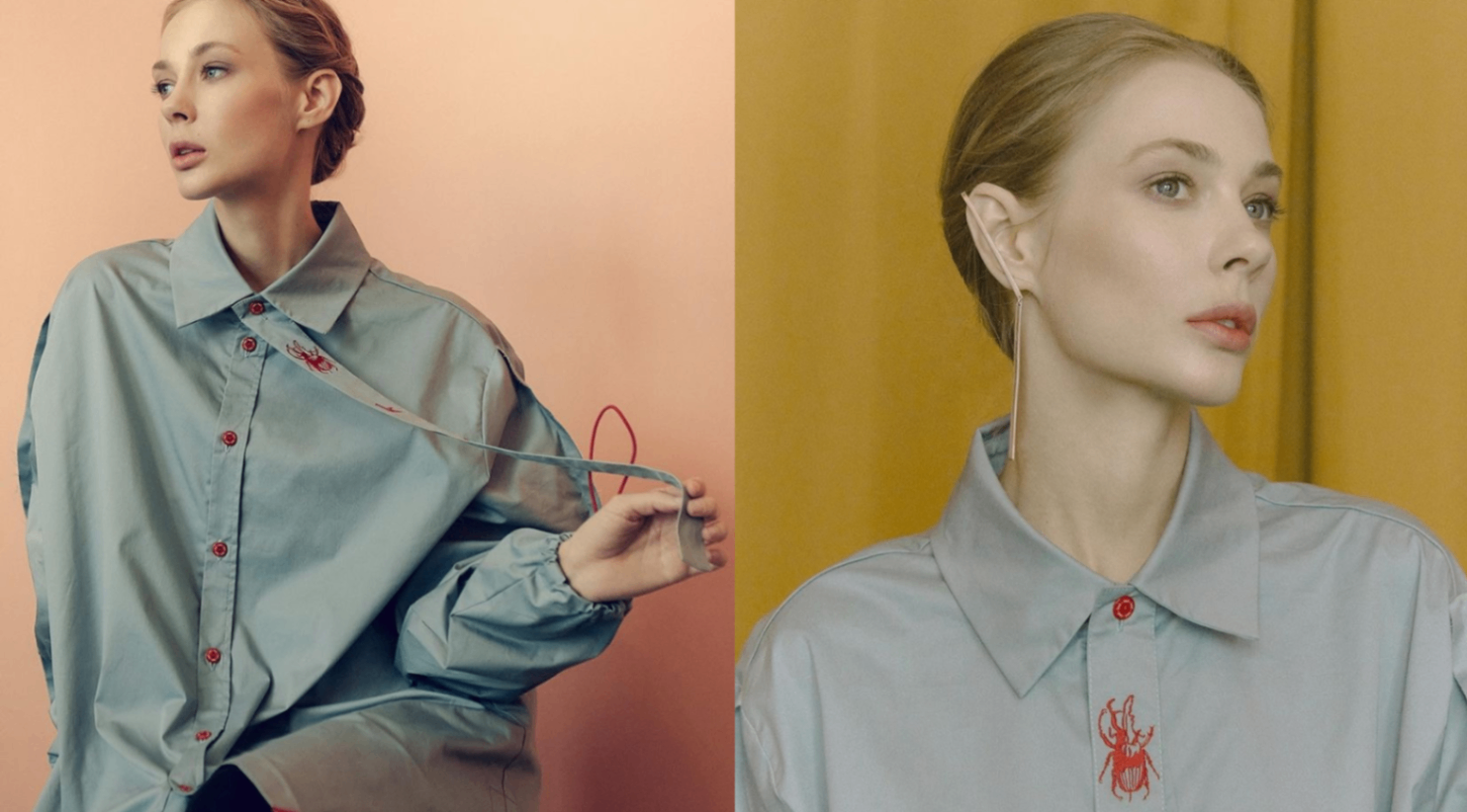 Татьяна в рубашке с тотемным символом KОD "Жук" - тонкий хлопок, свободный кройи двустороннее ношение. Шёлковая вышивка с эффектом градиента, как отдельный вид искусства: создана по эскизам Матвея - девятилетнего художника KОD. Она - яркое пятно и основа твоего нетривиального образа.