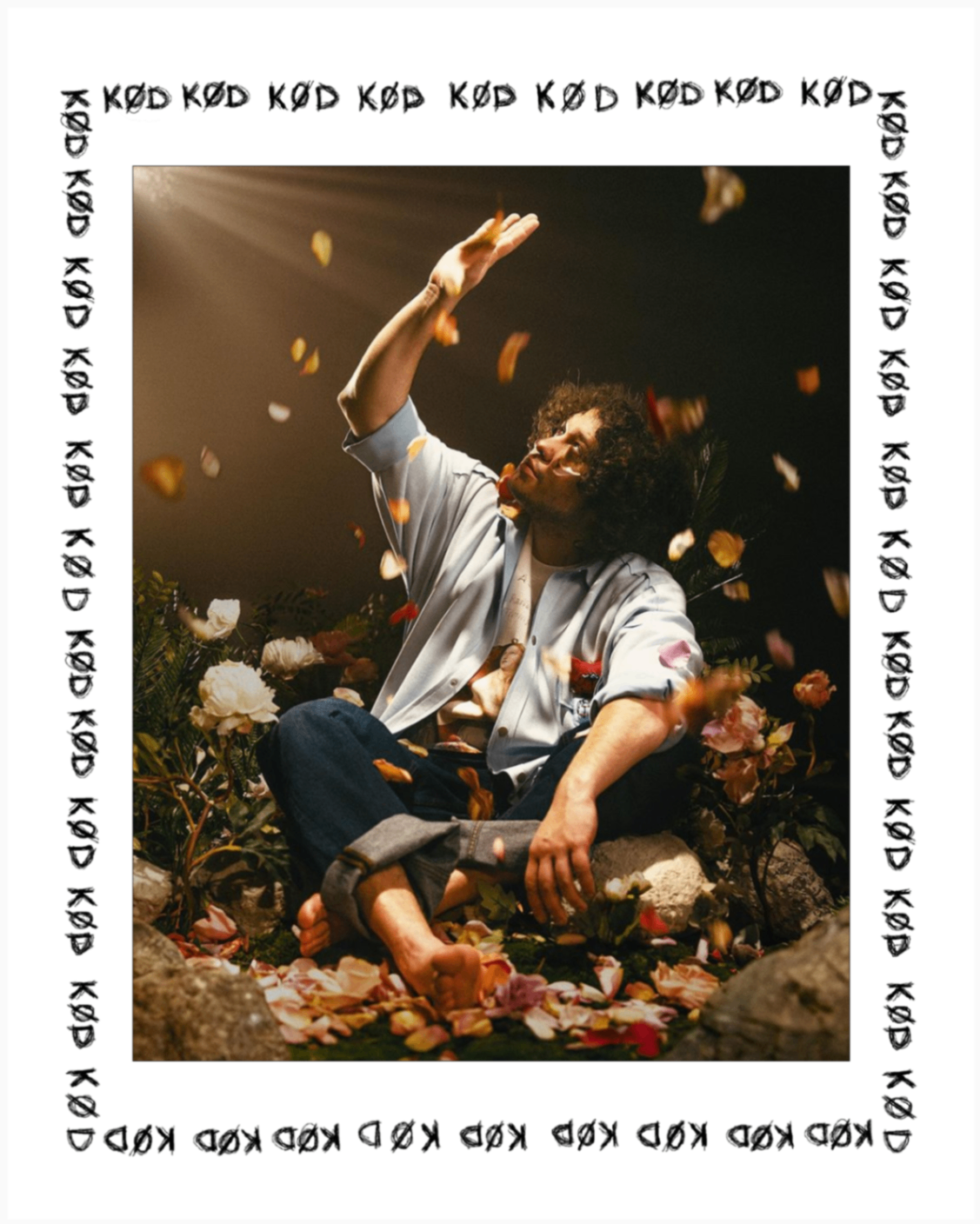 Антон в велюровой рубашке c авторской брошью, открытыми срезами и спущенной линией рукава. Модель не деформируется даже после ежедневной носки, а ткань мягкая, словно вторая кожа.