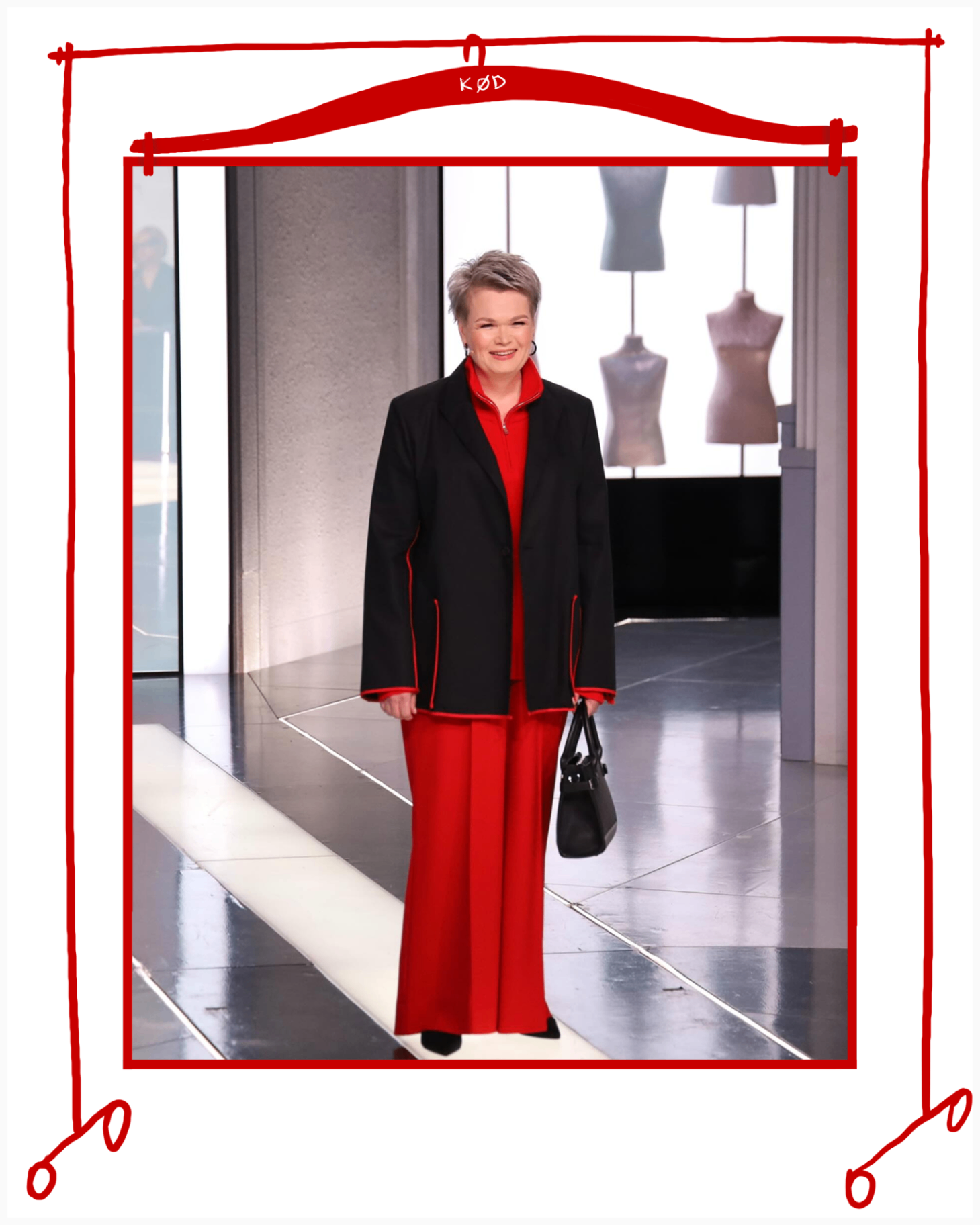 На героине выпуска Алене - Пиджак - холст "Полоска алая", принт которого был создан с помощью акварели и пастельных мелков. Ярко, сочно, свежо - для ослепительного летнего образа. На воротнике пиджака шеврон по индивидуальному эскизу, с ручной прорисовкой и вышивкой. Летний пиджак KОD из приятной, лёгкой, неприхотливой ткани.