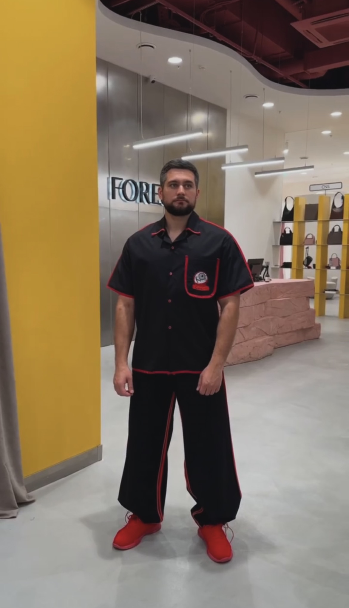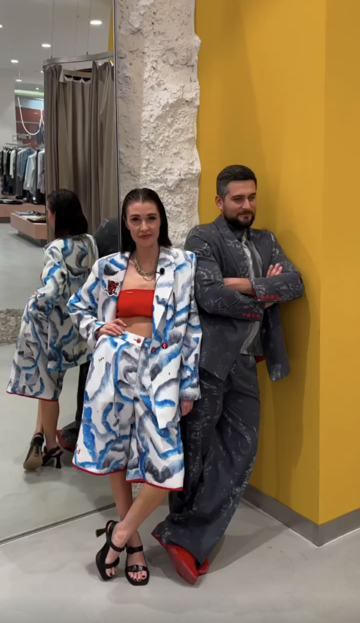 На Тимуре: Футболка "Полоска", окрашенная вручную, сверху Рубашка kоd двусторонняя “Объемный жук” - удлиненная модель со свободным кроем, как для мужчин, так и для женщин, чтобы носить как платье. И Двусторонние брюки из джерси из предыдущего образа!